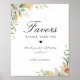 Elegant watercolor lilies in ivory white and peachy orange with delicate greenery, personalized wedding "Favors" sign poster. Modern typography design style mixes script with bold type.