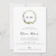 Modern botanical floral wreath, engagement party invitation. Card design features, watercolor lilies in ivory white and peachy orange with delicate greenery. Monogram wreath and elegant typography template design. Back of card, shown in solid sage green colour, can be customised.