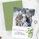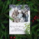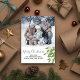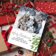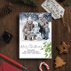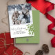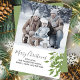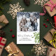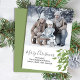 This design features a Merry Christmas one photo card, with a simple minimalist, botanical greenery, mistletoe design, a classic elegant, minimal, foliage leaves style, a holiday typography style.