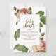 A beautiful modern botanical pink roses design baby shower invitation with a forest green background. Easy to edit or delete the text fields to suit your personal requirements. Matching items available in this collection.