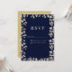 Botanical navy blue ivory gypsophila floral RSVP Invitation