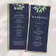 Our rustic yet elegant wedding program combines boho charm with botanical gold and navy blue hues. Featuring watercolor eucalyptus greenery and modern calligraphy script, it offers a sophisticated touch with a natural, artistic flair.