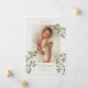 Celebrate your baby’s arrival with this elegant botanical birth announcement card. Featuring a soft neutral background, delicate green leafy accents, and space for your newborn’s photo and birth details, this design blends modern simplicity with timeless charm. Perfect for sharing your joyful news with family and friends.