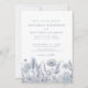Dusty Blue Floral Wedding Invitation. Capture the beauty of your wedding day with this elegant and modern invitation. The design features a mix of handwritten script and classic serif typography in a soft dusty blue, combining contemporary and timeless elements for a refined look.