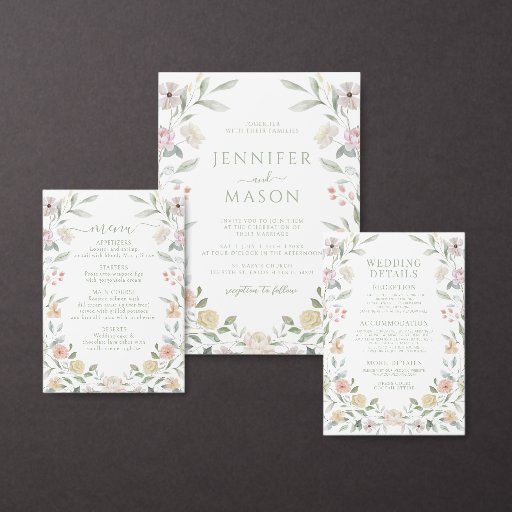 Dive into refined sophistication with this exquisite bohemian wedding invitation, featuring graceful pastel flower petals and greenery leaves intricately forming a captivating wreath. Perfect for spring or summer celebrations, this invitation exudes timeless elegance and delicate beauty, setting the tone for your special day. For personalisation theres a QR code with "kindly reply" RSVP message on the back to add your wedding website.