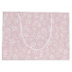 Delicate botanical pattern with leaves, berries, and flowers in white on a light pastel pink background. This Scandinavian-inspired design carries a touch of vintage charm, creating a calm and timeless aesthetic. A wonderful design for those who appreciate understated elegance and natural beauty.