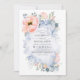 Botanical Peach Flowers Dusty Blue Wedding Invitation