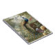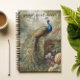 vintage botanical painting of a peacock standing on stairs in an English garden surrounded by pastel flowers