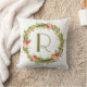 Botanical Peonies Floral Wreath Monogram Pillow