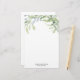 Stationery paper featuring light green and teal gentle watercolor foliage paired with