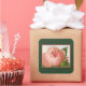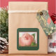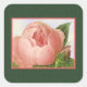 A pretty pink cabbage rose with a small rosebud just starting to open framed in pink. An elegant close-up from a vintage botanical painting on a hunter green background with a canvas texture. Click Customise It to add your name or message.