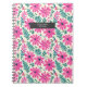 Watercolor inspired pattern with illustrations of pink daisies and botanical greenery.