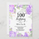 Botanical Purple Floral 100th Birthday Invitation