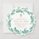 Botanical eucalyptus leaves with cross Christian Mother's Blessing Invitation features a beautiful wreath of watercolor greenery leaves and the mother's name in elegant gold colour script. The back is your custom rsvp qr code, so guests can easily respond to your invitation. Celebrate the mum to be and baby with a time of blessing, prayer, friendship, encouragement, and community. Enfold the mum to be and baby in prayer and community. This simple all in one invitation is perfect for a Catholic birth blessing party invite.