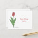 A birthday postcard with a botanical red tulip flower illustration in pastel colours and customisable texts (top and bottom): perfect to accompany a gift or to send to your best friend. On the back there is a tulip in line art!
