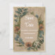 Rustic brown wood with green, dark orange, and gold hand-drawn beautiful foliage, woodland floral Wedding Save the Date invitations. This stylish modern abstract invitation is perfect for any classy and chic girl. This design is ideal for a trendy party event. Customise this design with your message and personalised information. All designs are printed