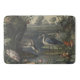 Botanical scene of blue crane by a river bath mat