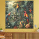 vintage painting of a botanical scene of colourful parrots and pineapples in a rainforest
