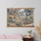 The polyester fabric displayed many wrinkles and several sharp creases throughout. At the bottom of the tapestry, I noticed a bulge in the fabric because it was not pulled tight enough before being connected to the wooden boards. It took me over an hour to spay water on the tapestry before putting it on an ironing board where I used a warm iron over a polyester cloth to remove the wrinkles and creases in the material. I was able to get out the wrinkles and creases that made that tapestry look as beautiful as its picture.