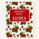 Personalised Recipe book in a scattered print of strawberries and strawberry plants adapted from vintage botanical drawings - deep red berries on a white background