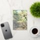 Unique design wedding invitations with a image of a beautiful creek, trees with green leaves and a cherry blossom tree.The text is in real foil.