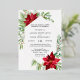 Theme Parties' botanical Christmas gold foil wedding invitation design features elegant watercolor greenery paired with the watercolor poinsettias and gold foil botanical accents and is set in a gold geometric frame. The typography is traditional serif in varying weights. It's the perfect invitation for your green, red, and gold Christmas season wedding! #HolidayWedding #ChristmasWedding