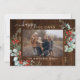 Botanical Watercolor Greenery Photo Dark Wood Holiday Card