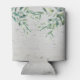 Botanical watercolor green leaves on wood, Bride and Groom, Rustic wedding can cooler.