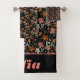Botanical watercolor pattern custom pink black bath towel set