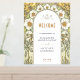 This elegant wedding welcome sign features a stunning botanical design with magnolia blossoms and intricate floral detailing in soft green and gold tones. Framed by an ornate arch, the artwork showcases delicate gold accents, offering a vintage yet modern aesthetic. The cream-coloured background enhances the floral arrangement, giving the sign a clean, sophisticated feel. Perfect for a garden, bohemian, or rustic wedding, this sign warmly greets guests with a refined, nature-inspired touch. The blend of delicate florals and gold details creates a timeless piece that complements a variety of wedding themes and venues.
