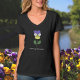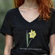 A black T-shirt with a botanical wild pansy flower illustration in pastel colours (Viola tricolor) and a customisable text: a nice gift for a girl who loves flowers!
