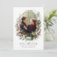 Featuring a delicate gold geometric frame encircling a lush watercolor wreath adorned with vibrant red berries, and greenery, this design combines seasonal charm with timeless elegance, making it ideal for Christmas themed weddings.