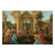 The Adoration of the Magi by Sandro Botticelli, c. 1478-1482, is a tempera painting on wood depicting the Wise Men and onlookers around the Holy Family at the birth of Christ in a manger in Bethlehem. Set amidst Roman ruins in a cool, Italian landscape, the linear perspective lines of the architectural elements converge and lead the eye to the vanishing point in the centre of the composition. Botticelli displays his mastery of the placement of figures and forms in perspectival space, a leading innovation of the early Renaissance painters. The figures’ individual features and varieties of pose, costume and colour show the fusion of Christian religion with classical art, science and philosophy of antiquity that is the hallmark of High Renaissance culture.