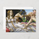 Botticelli Venus and Mars postcard. Tempera on Wood from 1483. Botticelli renounced many of his pagan works during his career. Venus and Mars represents one of his most beautiful paintings. The work depicts the Roman goddess Venus lounging with Mars while baby satyrs playfully play with Mars’ lance and helmet. A beautiful gift for fans of Roman Mythology, Early Renaissance Art, and Sandro Botticelli.