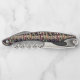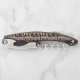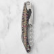 This corkscrew is shown in a wine lovers bottle print with black trim.