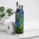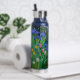 The bottle looks even better in real life. The ice cubes I put in lasts all day! I have my bottle with me all the time. It's summer and having something cold to drink feels amazing. With this bottle I always have something super cold. I have only tried the hot drink once and it lasted a long time as well. The color blue is a navy blue and the white printed on it is vibrant. It printed perfectly. I love my personalized smile water bottle.