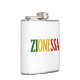 Well made flask, a little better than I had expected. Flask came in clear plastic box which gave it a nice presentation when I took it out of the zazzle packaging. Image is not printed on flask but on sticker. Don't know how this will hold up I haven't used it yet. This would make a Great gift! I plan to purchase more for friends! Cheers. I thought a little brighter than computer. Very crisp, writing wasn't