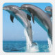 bottlenose dolphins jumping out of clear blue sea square sticker