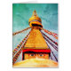 BIRTHDAY CARD: Vintage Great stupa in Boudhanath, with sleepless eyes of Buddha watching. Customise text and years "40 B'day Card" with wishes to your loved mothers, grandmothers, grandparents, aunts or good friends. ** Thousand faces of Boudhanath Stupa. The largest stupa in the world - Boudhanath is truly iconic place, with blissful calmness and being like an oasis in busy, dusty Kathmandu. Any time of the day sizzles with different views and colours, but always bustling with people circling its perimeter. It's surrounded by many buddhist monasteries, with large Tibetan community settled around. Discovering Himalayas - travel/dharma series. Original Photography/Art/Design by work4dream.