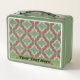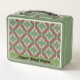 This is a standard metal lunchbox that appears to work just fine. We designed this box ourselves with an uploaded photo and custom text on the front and back. It looks absolutely beautiful except the front of the lunchbox is not centered like it shows in the photo. The print borders don't align with the inset flat part of the box where the preview photo online showed it perfectly centered in there. The back looks nice and centered though.