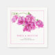 Simple watercolor Bougainvillea floral and white and purple, pink vertical wedding napkins. Perfect for a simple warm climate tropical botanical vine bracts and flower wedding. Edit these napkins with your own names and wedding date. Other matching items are available. Original watercolor hand painting and design by Sarah Trett for www.mylittleedenweddings.com