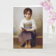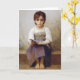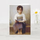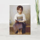 Bouguereau The Hard Lesson greeting card. Oil on canvas from 1884. William Adolphe Bouguereau was one of the great portrait painters of the neoclassical period. Though renowned for his classical and biblical paintings, many of his contemporary portraits are some of the most stunning and moving. The Hard Lesson depicts a cute working class girl studying barefoot outside trying to better herself through education. A pretty gift for fans of Bouguereau, reading paintings, neoclassical portraits, and fine art.