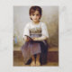 Bouguereau The Hard Lesson postcard. Oil on canvas from 1884. William Adolphe Bouguereau was one of the great portrait painters of the neoclassical period. Though renowned for his classical and biblical paintings, many of his contemporary portraits are some of the most stunning and moving. The Hard Lesson depicts a cute working class girl studying barefoot outside trying to better herself through education. A pretty gift for fans of Bouguereau, reading paintings, neoclassical portraits, and fine art.