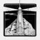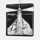 A black and white illustration of the lighthouse at the end of the boulder bank in Nelson, New Zealand. This lighthouse is at the cut near and has haulashore island in the background.
