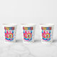 A vibrant and colourful inflatable castle, perfect for a fun-filled birthday party! Predominantly in shades of pink and blue, the castle features charming turrets with flags, battlement-adorned walls, and a bright yellow entrance. A protective net encloses the play area. Set on a flat surface, this whimsical castle brings energy and joy to any celebration.
