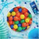 Bouncy Balls Ball Pit themed Birthday Party blue, red, green, orange and yellow paper plates.
