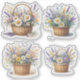 Bouquet in a rustic wicker basket, filled with wildflowers such as daisies, lavender, and baby’s breath