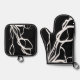 Bouquet Noir: Abstract Black & White Oven Mitt & Pot Holder Set