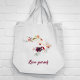A bundle of roses in pink, purple and yellow. With lots of sprigs and leaves in green, pink, and purple. The background is white colour. The fonts can be customised further to change the colour and style.