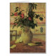A Bouquet of Flowers in Front of a Window (1910) by Maxime Maufra is a vintage impressionism fine art floral still life painting. A teapot is on a shelf in the background. A beautiful bouquet of blooming spring garden flowers in a vase with handles on a kitchen table with books and letters via air mail.
